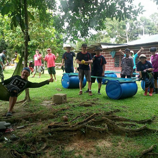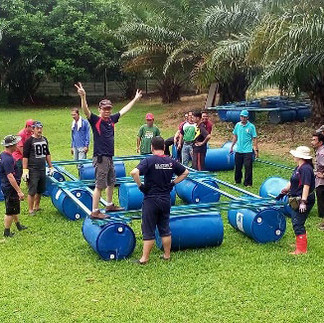 Update: Mr. Anwar (the designer and engineer for these rafts) also passed down his knowledge on tying the drum to the frame to CREST members and the local team. The skills learnt helped speed up the work because everyone participated to complete the raft.